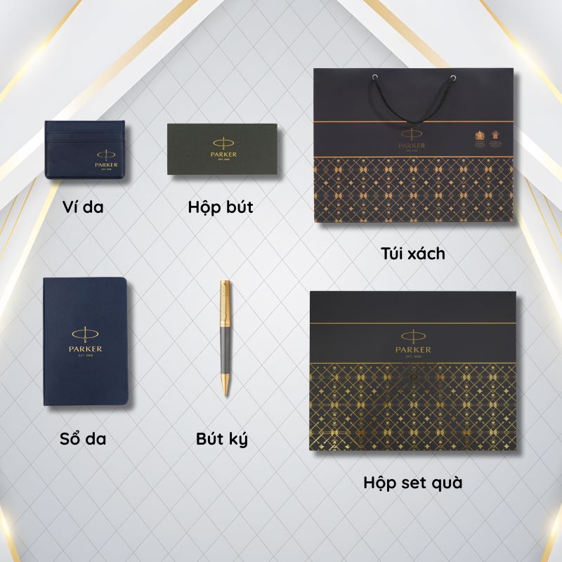 Tất cả được đặt trong hộp quà Parker thiết kế sang trọng, giúp bảo vệ sản phẩm tối ưu, kèm túi giấy đồng bộ nhận diện thương hiệu. Mỗi chi tiết đều được lựa chọn kỹ lưỡng để đảm bảo sự hài hòa về phong cách và thẩm mỹ, biến bộ giftset này trở thành món quà ý nghĩa, trang nhã, sẵn sàng dành tặng đối tác, khách hàng hay người thân trong những khoảnh khắc đặc biệt.